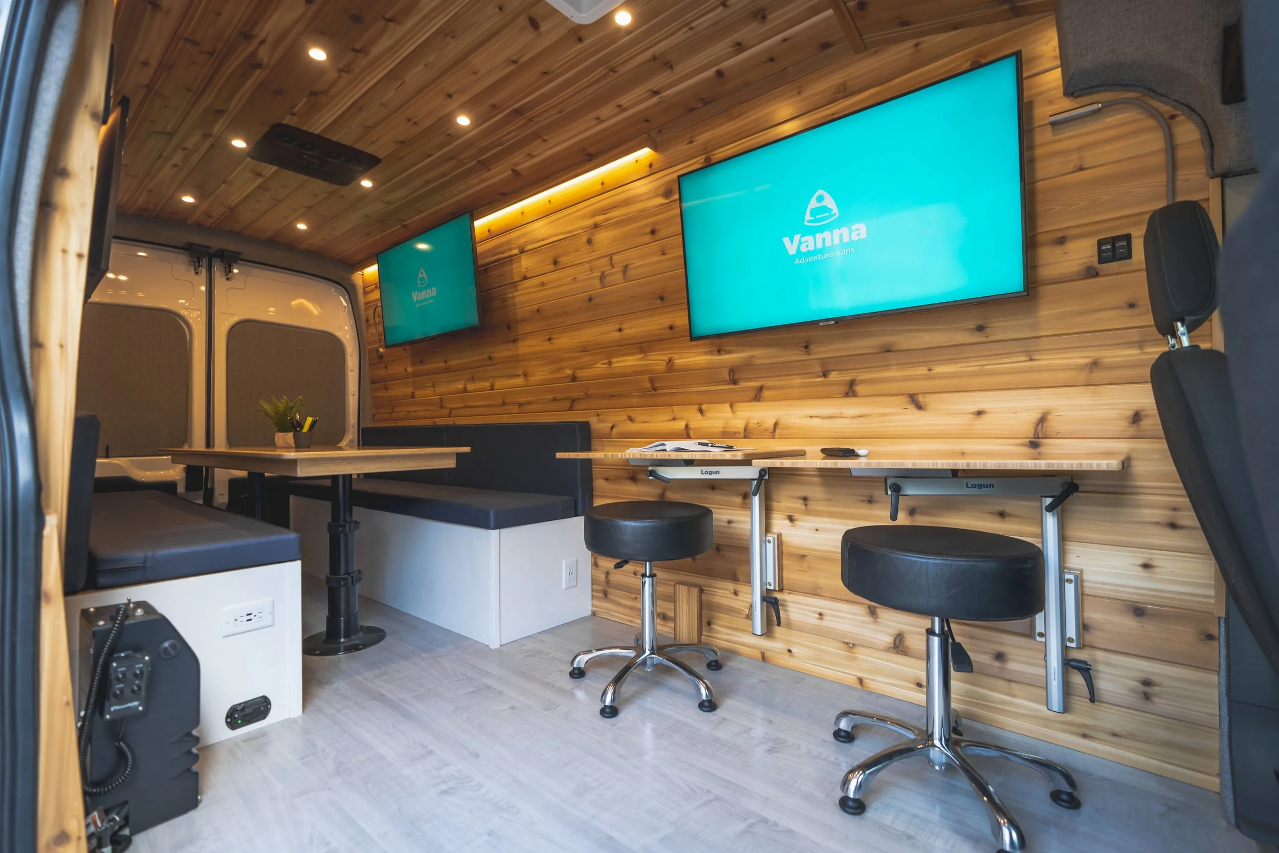 Browse Vanna’s growing line of specialty vans, from a hunting rig to a mobile office camper, marketing van, mobile classroom, retail van, or mobile medical units. Do you have a project in mind that isn’t featured here? We are always looking forward to the next dream build and are up for the challenges they might present. Specialty vans feature the same advanced EcoFlow power system that we use in our camper vans, so you can travel with confidence that your build can handle whatever life throws at you.